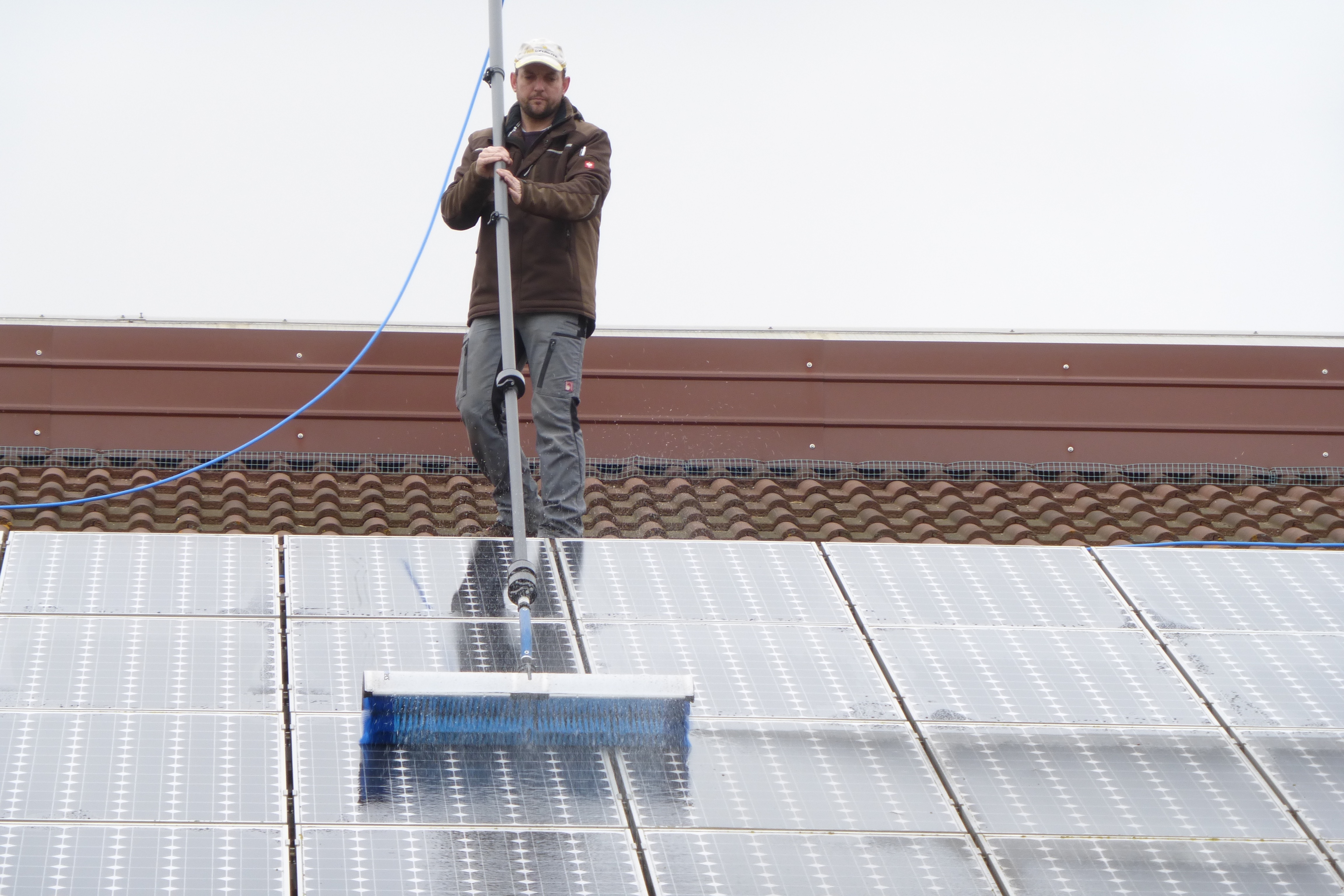 Mit Hilfe einer Teleskopstange werden Ihre Solarmodule nicht betreten!