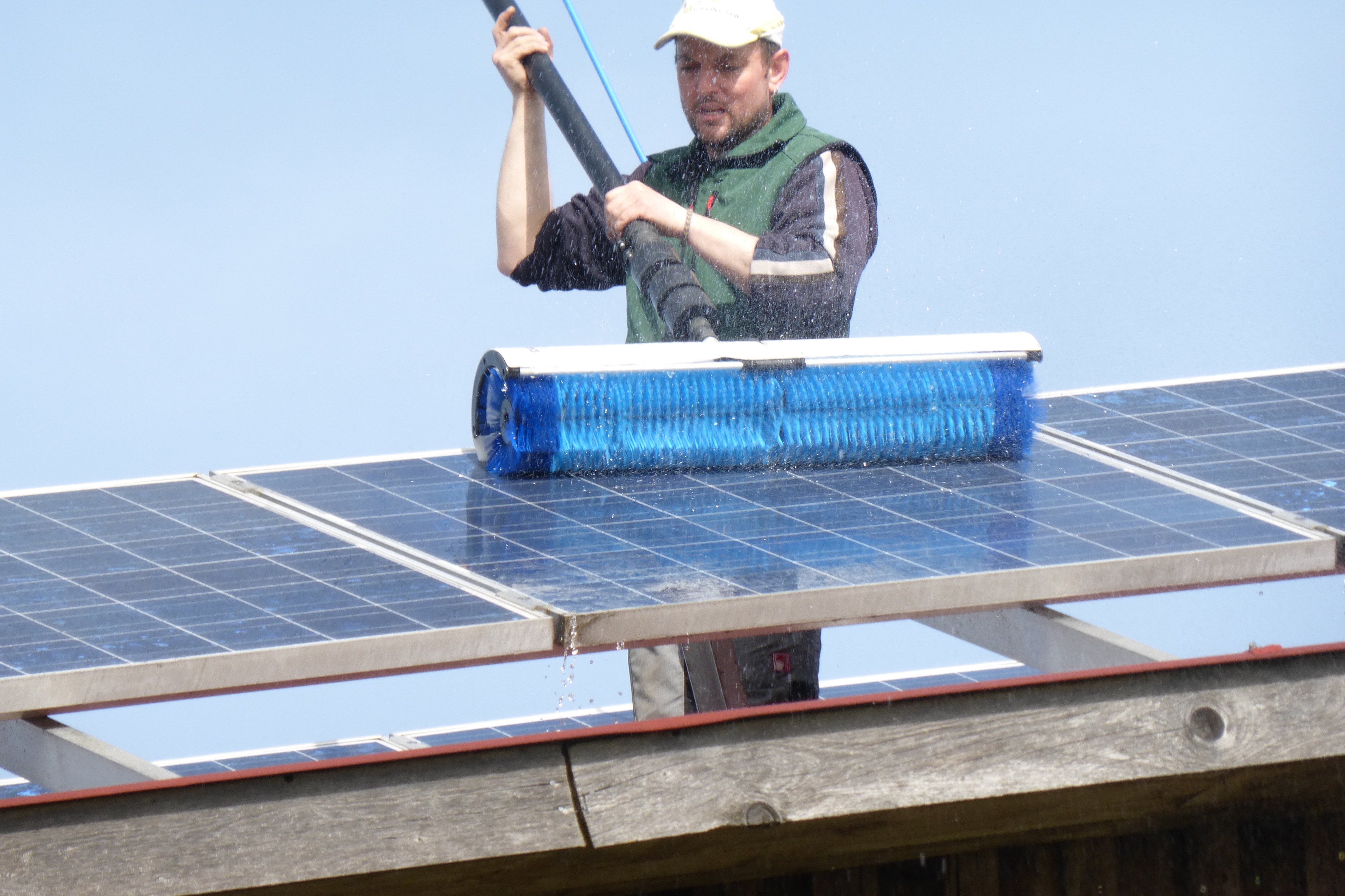 Da Sie sich mit dem Erwerb einer Solaranlage für eine umweltfreundliche Art der Energiegewinnung entschieden haben, wird Sie früher oder später das Prinzip Nachhaltigkeit, auch bei der Reinigung der Anlage, beschäftigen. Aus diesem Grund verwenden wir zur Reinigung ausschließlich reines, entmineralisiertes Wasser. Für die effektive Reinigung setzen wir je nach Art der Verschmutzung und Art der Anlage unterschiedliche Reinigungsverfahren wie Handbürsten oder Rotationsbürsten ein, welche zugleich die Oberfläche schonen. Auf diesem Weg können wir Ihnen garantieren, dass weder Schäden noch Rückstände auf Ihrer Anlage zurückbleiben.